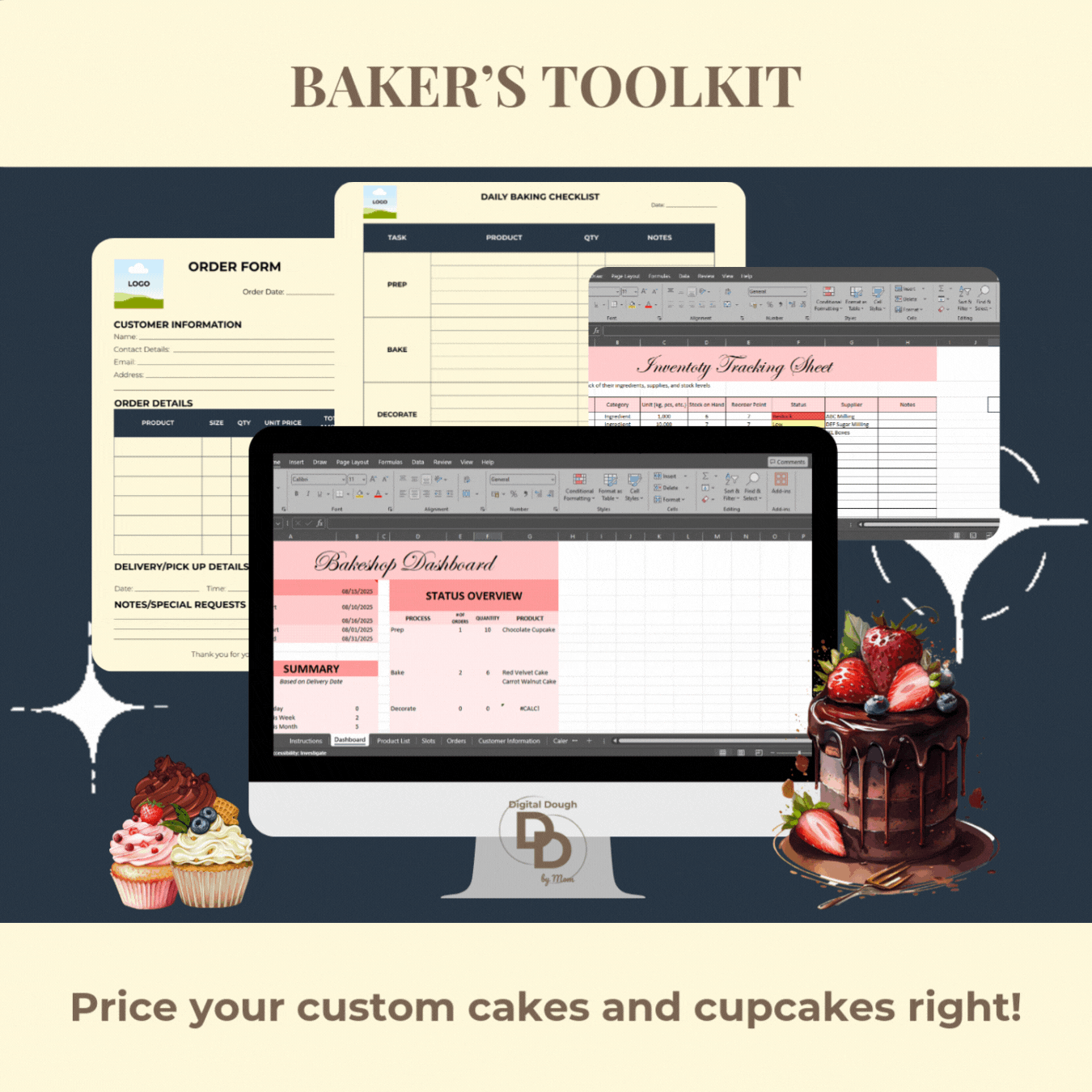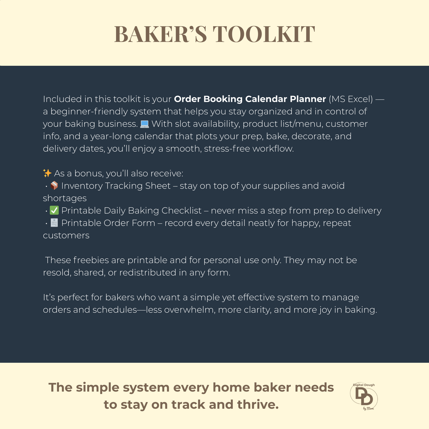 Everything a home baker needs to stay organized, stress-free, and confident—from planning orders to tracking inventory. Bake smarter, plan easier, and delight every customer with the Baker’s Toolkit.