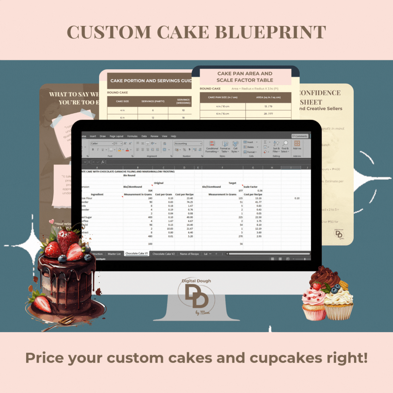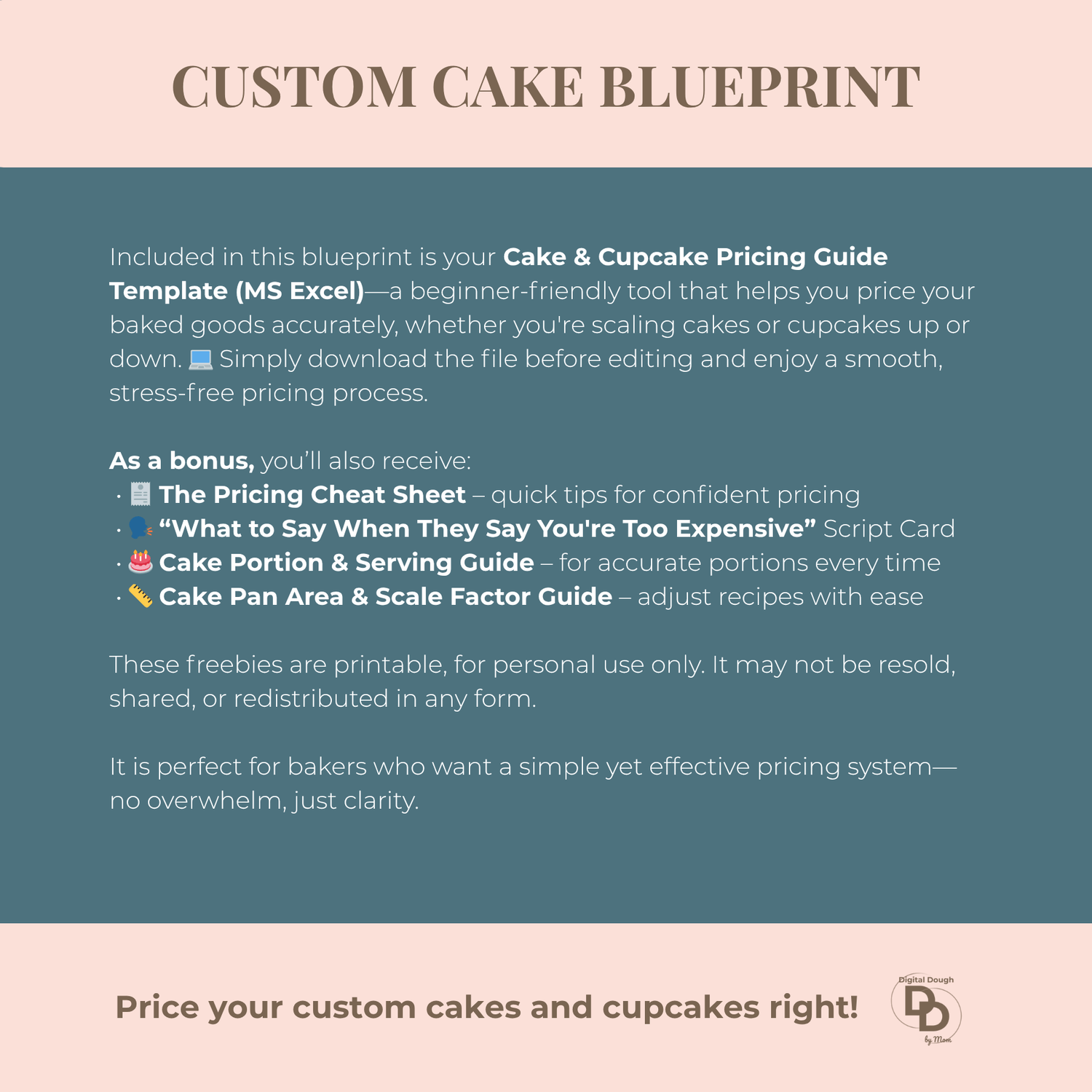 Take the guesswork out of pricing, scaling and portioning! The Custom Cake Blueprint helps you cost, price, and plan every cake and cupcake with confidence—perfect for growing your baking business.