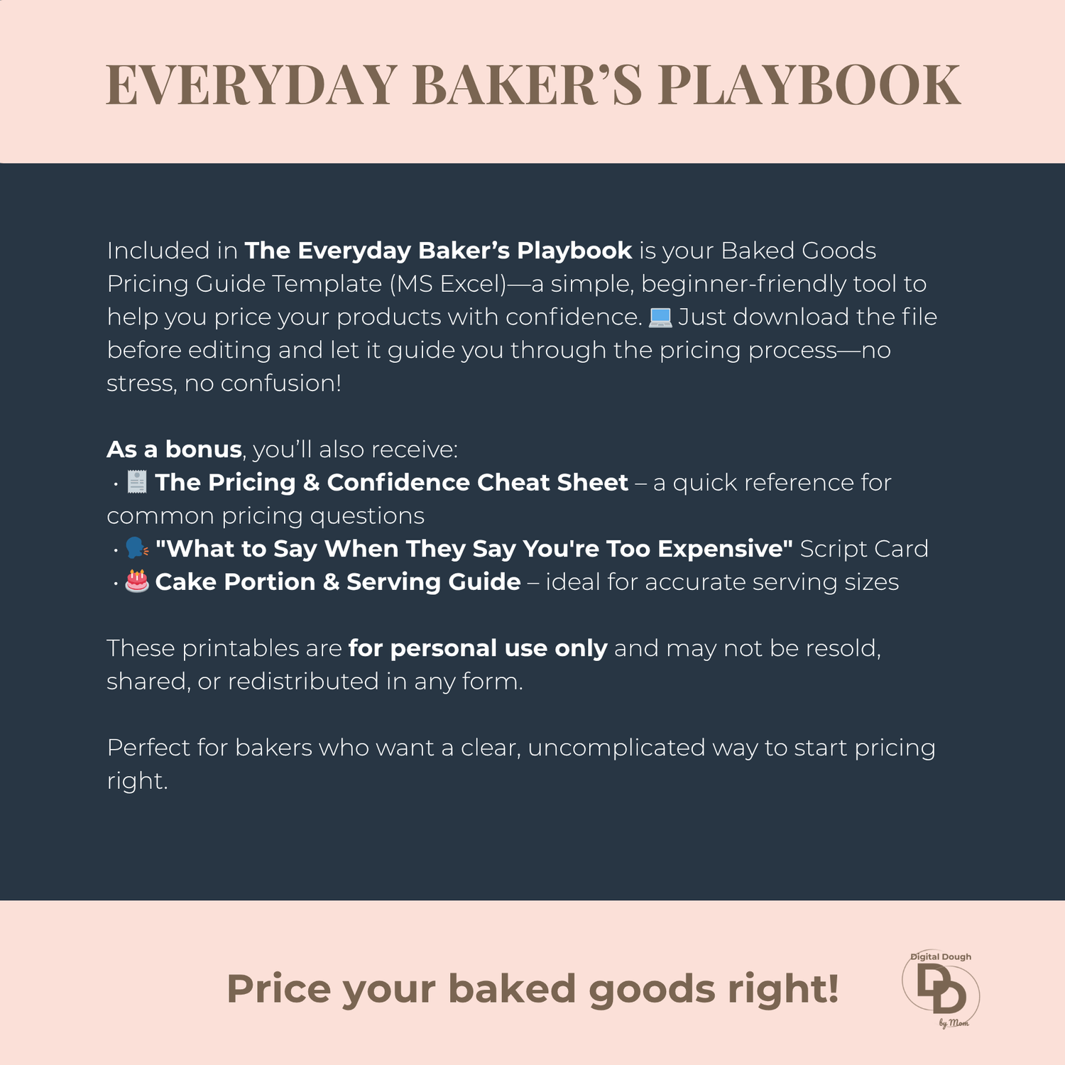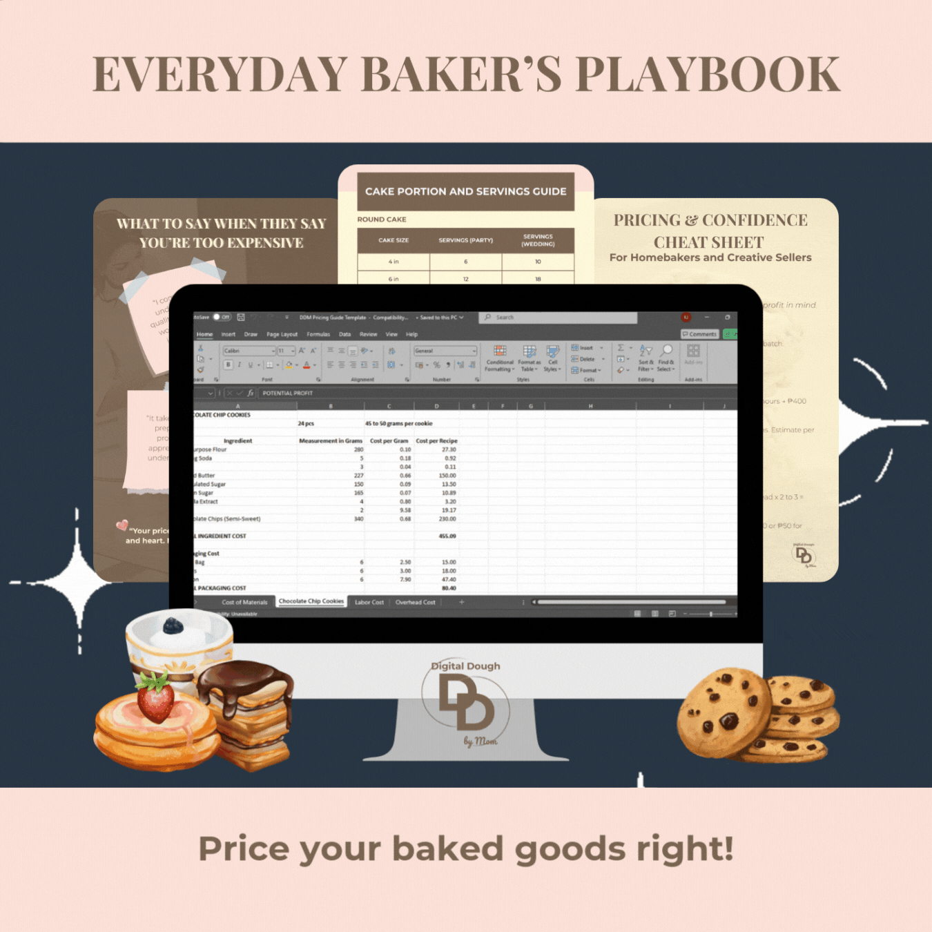 Price your cookies, pastries, and baked goods confidently! The Everyday Baker’s Playbook guides you step by step to cost, portion, and sell with ease.