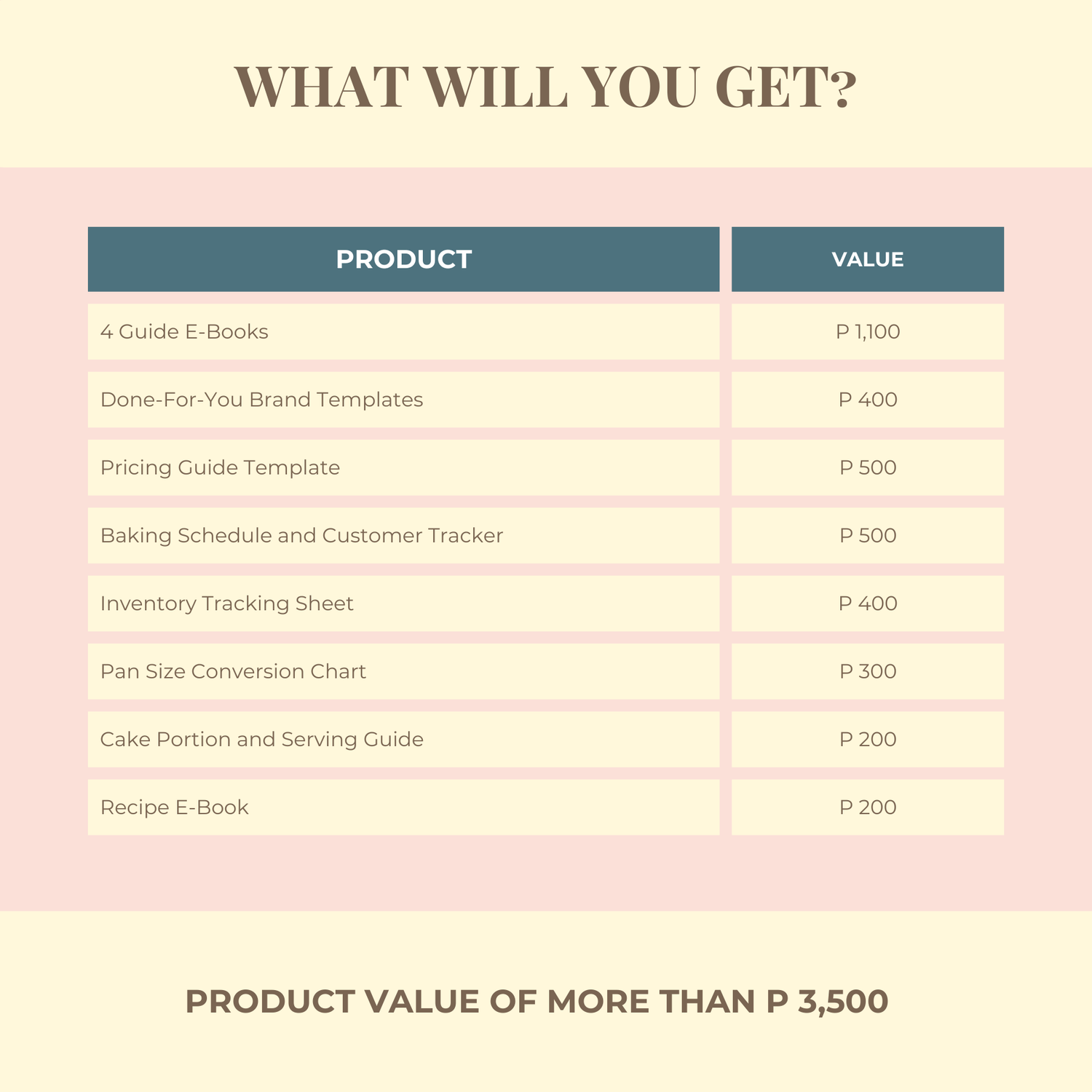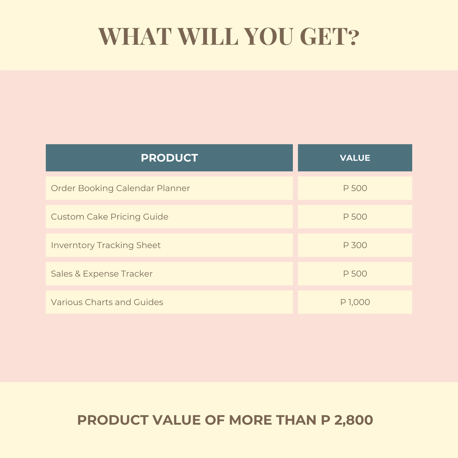 Plug-and-play tools like pricing guides, planners, and other business tools. Save time, stay organized, and run your baking business smoothly.