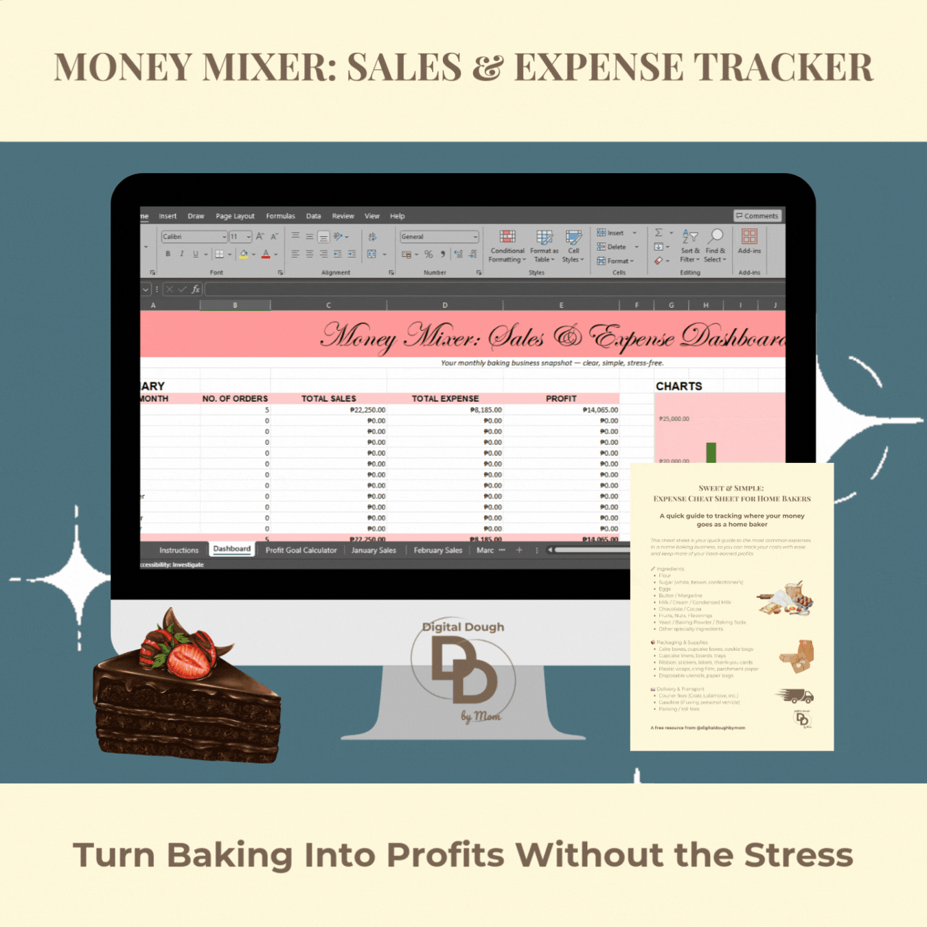 Keep your baking business finances simple and stress-free. With automated dashboards, monthly sales logs, and smart expense tracking, this Excel tool helps you see your profit at a glance and stay on top of your goals—all without messy notebooks or complicated spreadsheets.
