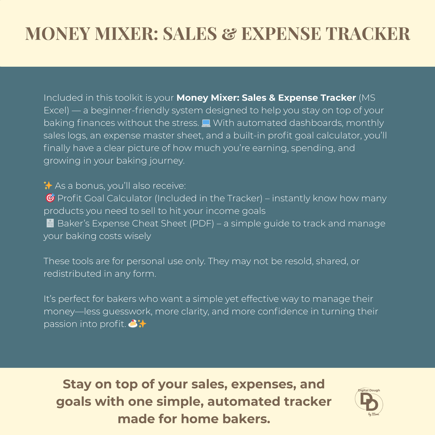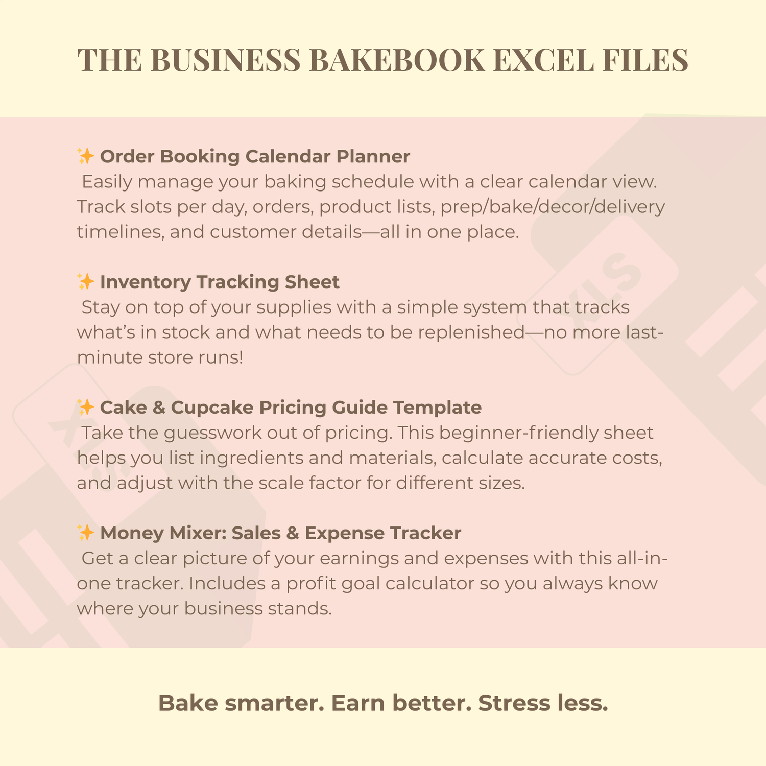 Your all-in-one toolkit to simplify, organize, and grow your home baking business. Inside, you’ll find beginner-friendly templates and trackers—from pricing and expenses to inventory and order management—so you can focus more on baking and less on the overwhelm.